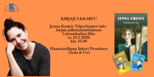 Jenna Kostet: Yöperhosten talo -kirjan julkistamistilaisuus to 19.3.2026 klo 16.00