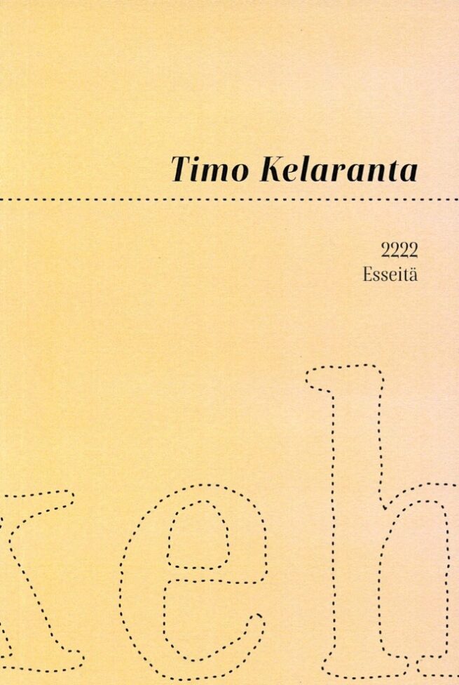 Valokuvataiteilija ja kirjailija Timo Kelarannan (s. 1951) esseekokoelma 2222 sisältää yhdeksän esseetä, jotka käsittelevät taidetta, historiaa, Venäjää, Helsinkiä, kuolemaa, unohdusta. Tekstejä yhdistää tekijän pyrkimys havainnoida ulkoista todellisuutta tarkasti ja välttää ilmiöiden mystifiointia. Omasta taiteestaan Kelaranta ei kirjoita, omasta elämästään kyllä, mutta ennen kaikkea toisista ihmisistä ja heidän tekemisistään. Teos ilmestyi alun perin vuonna 2022 rajoitettuna 200 kappaleen editiona, joka on pitkään ollut loppuunmyyty. Tämä vuonna 2025 julkaistu rajoittamaton jälkieditio on sisällöltään sen kanssa yhtäpitävä. mutta ulkoasu on riisuttu. 2222 on Timo Kelarannan ensimmäinen esseekokoelma.
