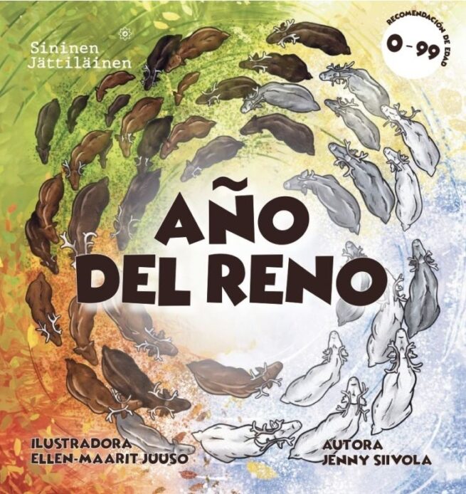 Sabías que el año del reno es algo más que montañas y nieve? En la vida del reno, ocurren cosas durante todo el año: nacen crías, llega la temporada de mosquitos, la práctica de excavación en la nieve llamada kiekero y las carreras de renos. Con las coloridas ilustraciones y los tiernos versos que encantan a los más pequeños, los lectores infantiles volverán una y otra vez a este libro, mientras que los más mayores descubrirán muchos datos nuevos sobre el animal más conocido de Finlandia. La ilustradora Ellen-Maarit Juuso creció en un pequeño pueblo de la región de Käsivarsi, en Laponia, donde la vida giraba en torno a la cría de renos: en primavera alimentando a los renos de un año y en verano marcando a las crías. Al crecer cerca de la naturaleza y de las tradiciones del pastoreo de renos, se inspiró para ilustrar historias en las que se unen el amor por su tierra natal y un profundo respeto por la forma de vida del norte. La autora de versos, Jenny Siivola, es madre de un niño pequeño y pasó gran parte de su infancia en la cooperativa de renos de Oraniemi, cuidando a las crías de reno con biberón y conviviendo con sus familiares pastores, lo cual contribuyó a desarrollar su elocuencia.