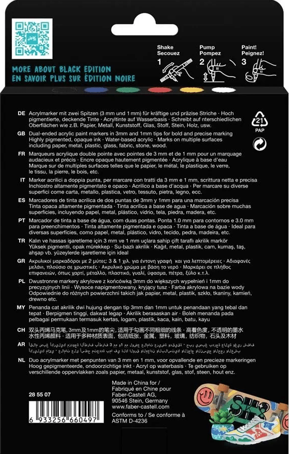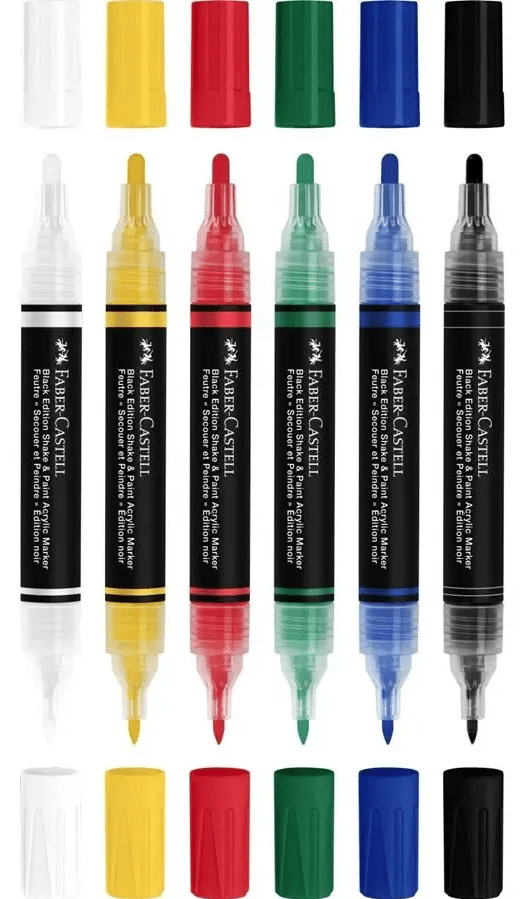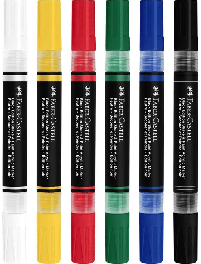 Faber-Castell Black edition Shake & paint akryylitussi, 6 perusväriä - Image 4