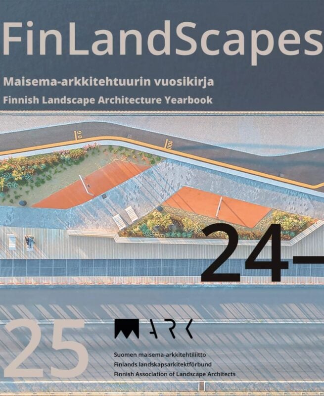 Maisema-arkkitehtuurin vuosikirja FinLandScapes 2024–2025 tarjoaa lukijalle läpileikkauksen suomalaisesta nykymaisema-arkkitehtuurista. Lähes neljänkymmenen projektin parissa voit tutustua kaupunki- ja luonnonympäristöjen suunnittelun ajankohtaisiin aiheisiin – olit sitten alan ammattilainen tai muuten asiasta kiinnostunut. Suomen maisema-arkkitehtiliiton julkaisemassa kirjassa esitellään myös yhdistyksen palkintoja saaneet tahot vuosilta 2024–2025. Vuosikirjasta löydät lisäksi koosteen viime vuosien aikana järjestetyistä maisema-arkkitehtuurikilpailuista. Tervetuloa matkalle kiinnostavaan maisema-arkkitehtuuriin, jossa maisema ja ympäristö eivät ole pelkkä suunnittelun kohde, vaan merkittävä osa jokaisen elämää. Kirjan on julkaissut Suomen maisema-arkkitehtiliitto MARK, maisema-arkkitehtien ammatillinen ja aatteellinen yhdistys, joka edistää suomalaisen maisema-arkkitehtuurin arvostusta sekä jäsentensä ammatillisia etuja. The Landscape Architecture Yearbook FinLandScapes 2024–2025 offers readers a cross-section of contemporary Finnish landscape architecture. With nearly forty projects, you can learn about current topics in urban and natural environmental design, whether you are a professional in the field or simply interested in the subject. The book, published by the Finnish Association of Landscape Architects, also presents the association’s award winners from 2024 to 2025 and features a summary of the landscape architectural competitions held in recent years. Welcome to an interesting tour into landscape architecture, where the landscape and the environment are not just objects of design, but an important part of everyone’s life. The book is published by the Finnish Association of Land- scape Architects MARK, a professional and ideological association of landscape architects that promotes the appreciation of Finnish landscape architecture and the professional interests of its members.
