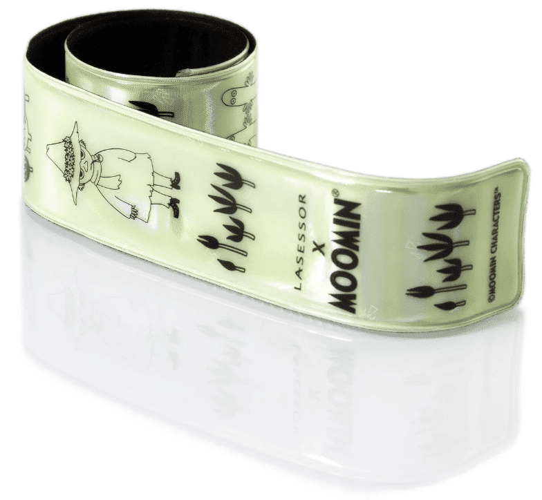 Muumi hohtojousiheijastin on kätevä tapa yhdistää Muumit, helppous, hauskuus ja turvallisuus osaksi pukeutumista. Hohtojousiheijastin kiinnitetään helposti napsauttamalla se kohteen ympärille ja se on heti käyttövalmis!