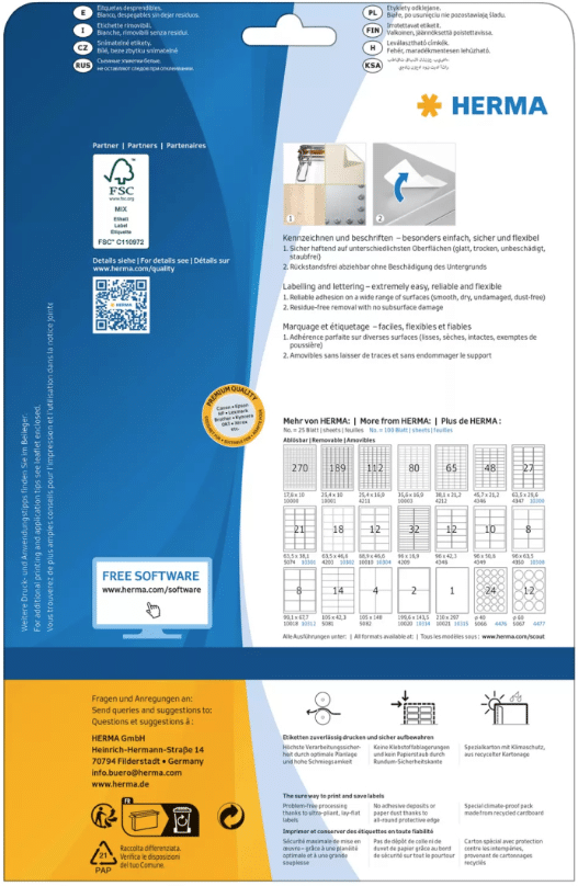 Herman special -etiketit ovat entistäkin laadukkaampia. Ne ovat erittäin valkoisia ja pinnaltaan sileitä. Ne sopivat kaikkiin tulostimiin ja kopiokoneisiin, niin mustavalko- kuin monivärilaitteisiin. Etikettien paperi on paksumpaa, jolloin niiden irrottaminen on helpompaa. Ne ovat paremman liiman ansiosta paremmin kiinni taustapaperissa, etikettien tulostaminen on nopeampaa ja varmempaa. Tuotteet on valmistettu kestävän kehityksen periaatteiden mukaisesti, ne ovat hiilineutraaleja, etikettien paperi on 100 % sertifioitu PEFC -periaatteiden mukaisesti ja valkaisu on suoritettu kloorivapaasti. Ne voidaan myös kierrättää 100 %:sti jätepaperin mukana.
