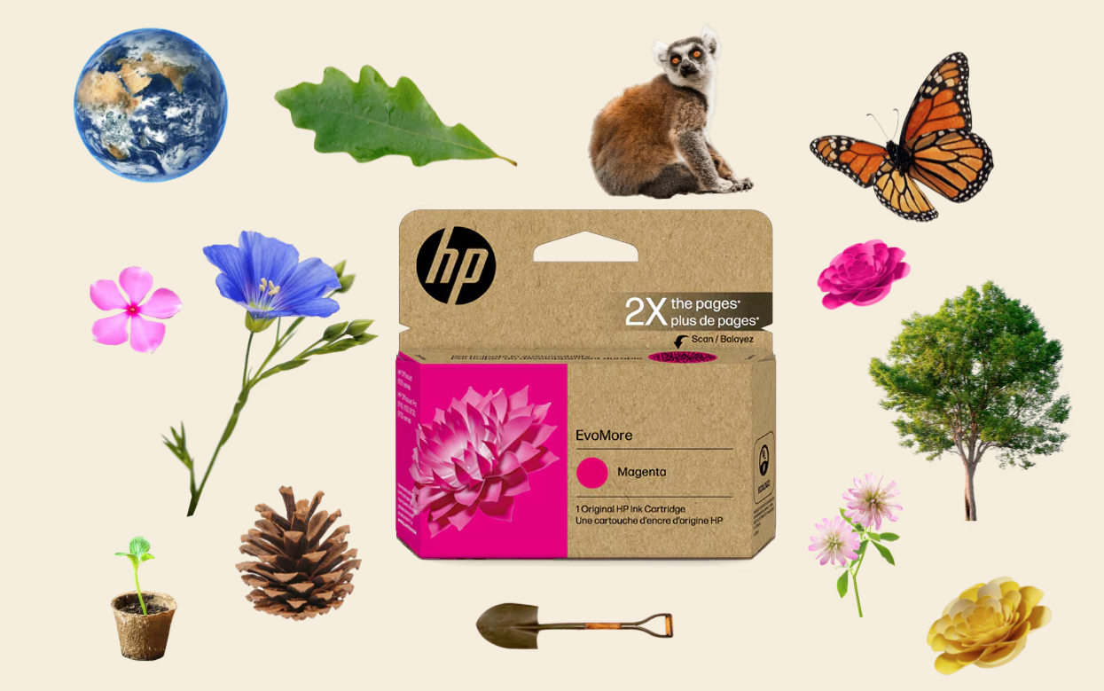 • Alkuperäiset HP EvoMore -mustepatruunat tulostavat n. kaksinkertaisen määrän sivuja verrattuna alkuperäisiin vakiokoon HP-mustepatruunoihin. Kun patruunoita ei tarvitse vaihtaa niin usein, se vähentää kasvihuonepäästöjä, jotka syntyvät muovin käytöstä ja tuotannosta