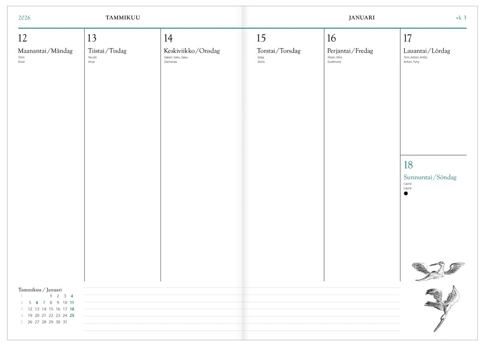 - Aukeamalla viikkonäkymä ja tilaa muistiinpanoille