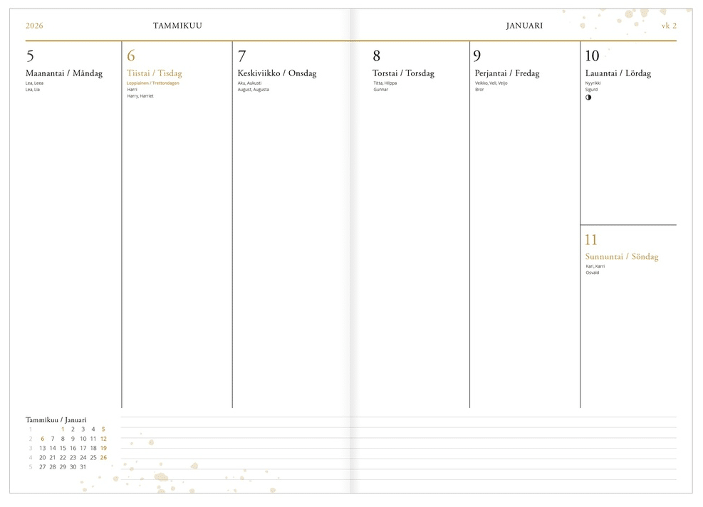 - Kalligrafiastudion kovakantinen viikkopäivyri vuodelle 2026