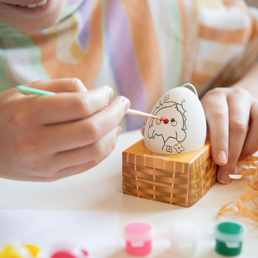 - Legamin Hoppy Easter -munien koristelupakkaus on yllättävä useammallakin kuin yhdellä tavalla. Keraaminen muna, jossa on kuvio maalattavaksi ja ripustettavaksi, sekä 6 akryyliväriä ja yksi sivellin