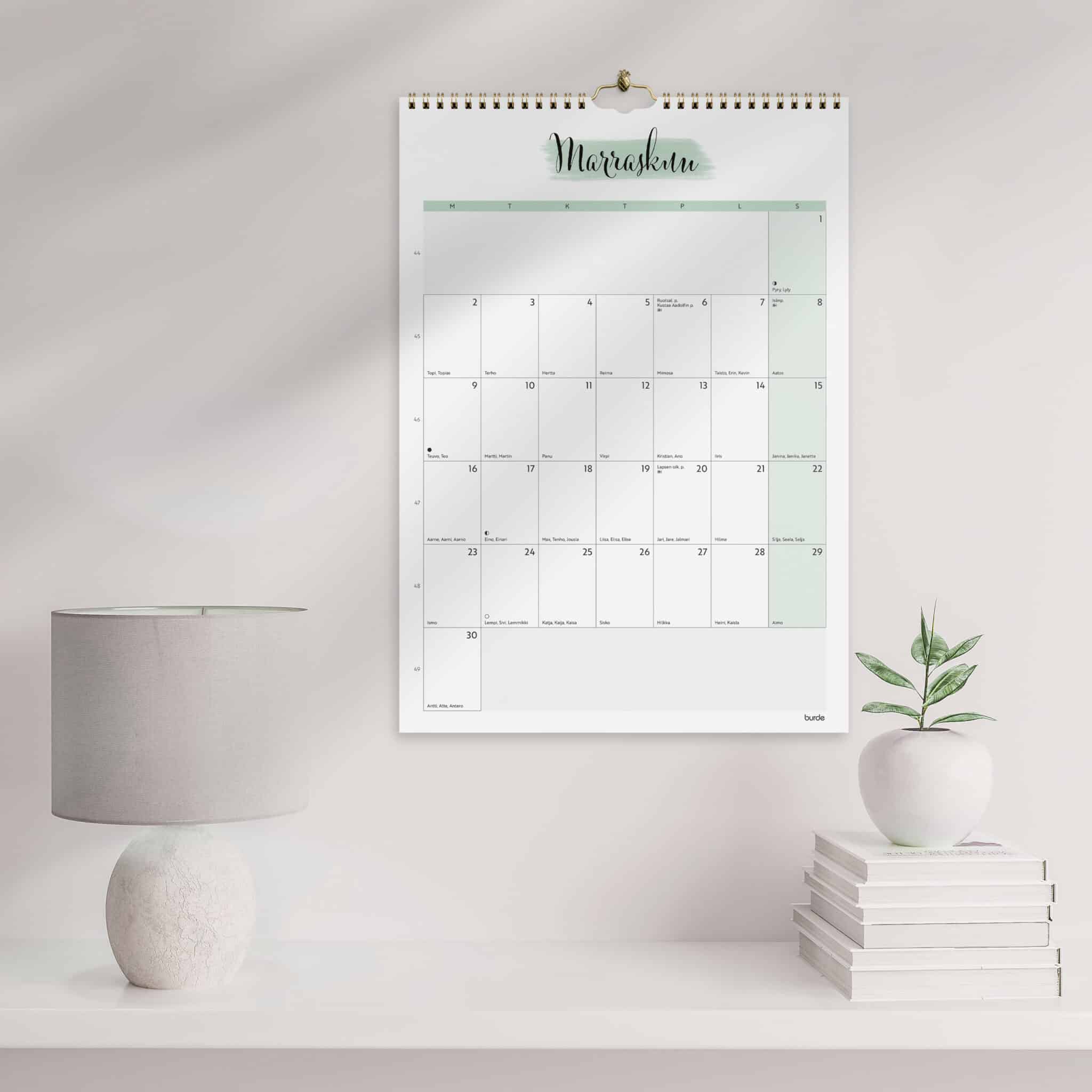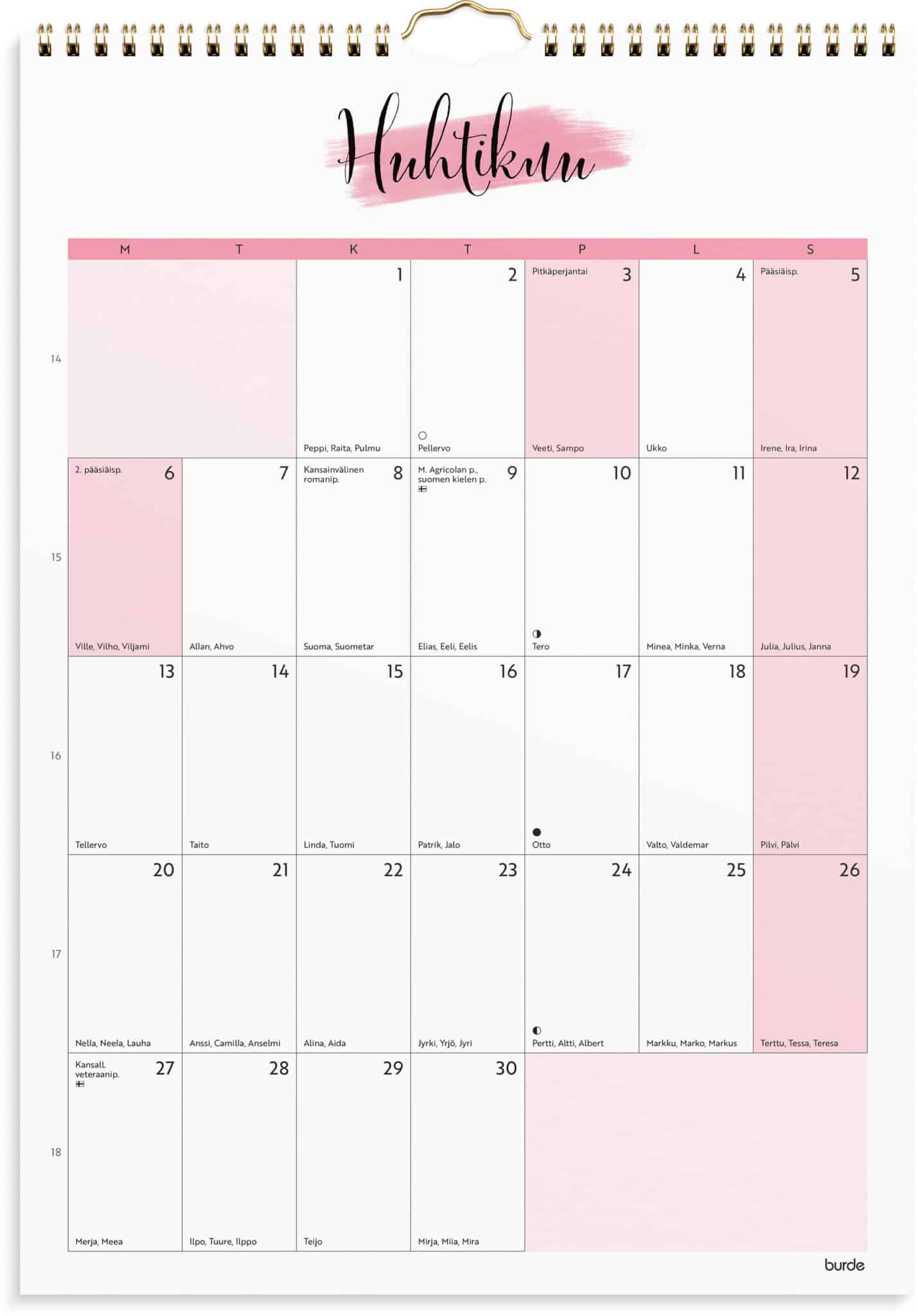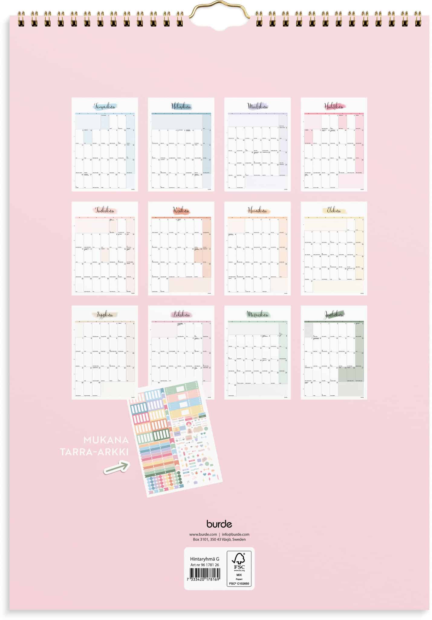 • Muodikkaan ulkoasun ja tyylikkäiden pastellivärien ansiosta kalenterille löytyy helposti paikka