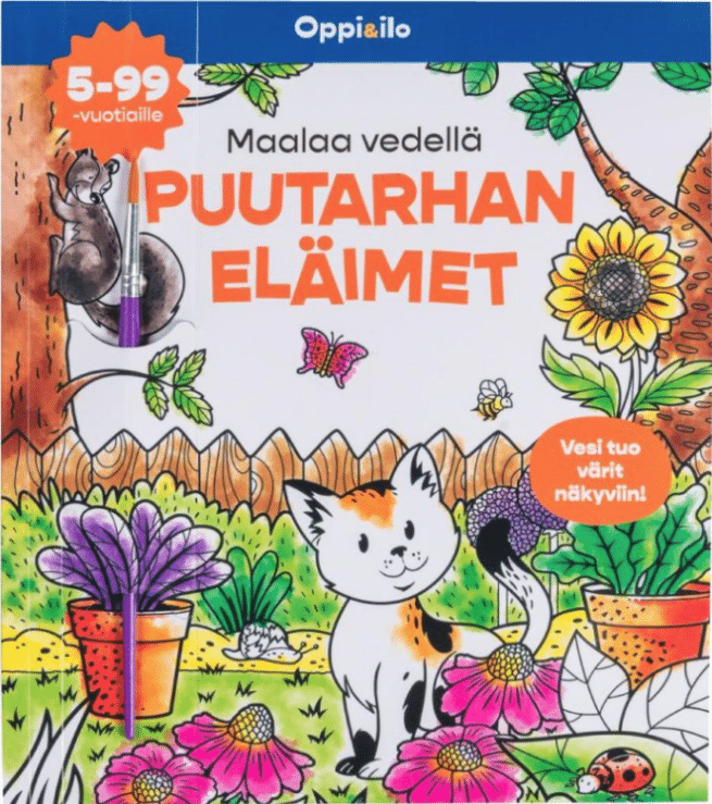 Oppi & ilo Maalaa vedellä puutarhan eläimet -puuhakirja