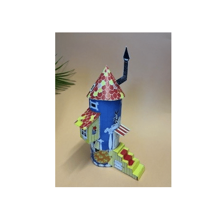 • Muumitalon muotoinen askarteluarkki suomeksi
