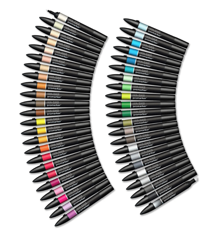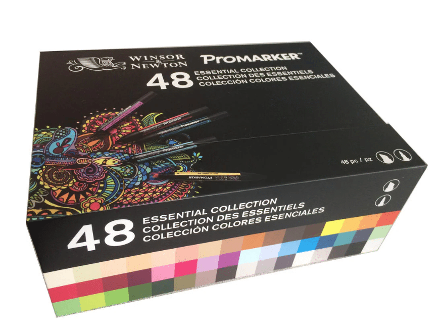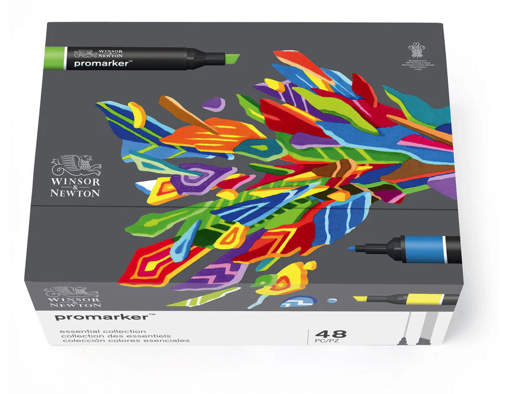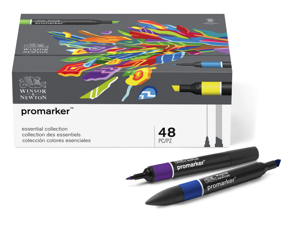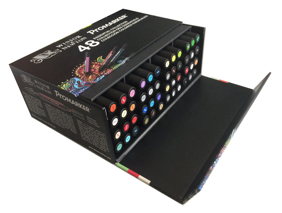 48 tärkeintä väriä Winsor & Newtonin suositusta Promarker-kynien valikoimasta. Pakattu tyylikkääseen, integroituun säilytyslaatikkoon, jossa on magneettinen suljin. Winsor & Newtonin ammattitason Promarker-kynät ovat kaksikärkisiä, leveällä talttapäällä ja hienolla luodinmallisella korkealaatuisella kärjellä.