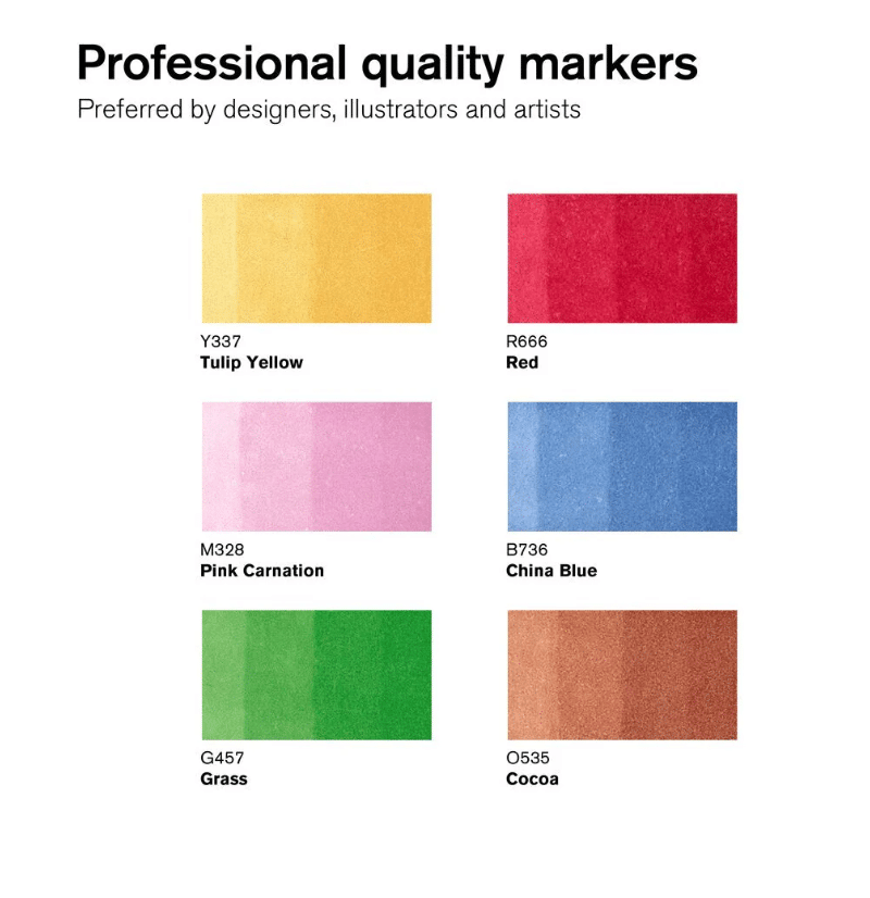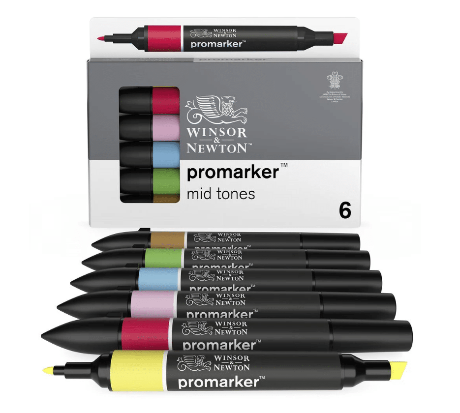 Winsor & Newton Promarker keskisävyiset lajitelma on erityisesti suunniteltu täydentämään toisiaan ja ne tuovat kirkkautta ja joustavuutta väripalettiisi.