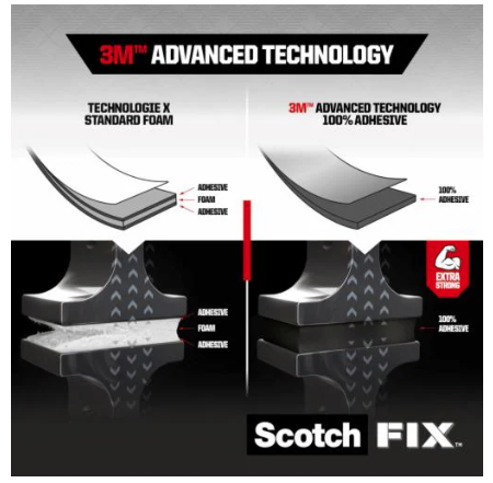 KÄYTTÖOHJE: Varmista, että pinta on tasainen ja sileä, ja että se kestää kiinnitettävän esineen. Teipin koko pinnan pitää kiinnittyä täysin molemmilta puolilta. Käyttölämpötila 10…40° C. Puhdista pinta alkoholilla ja anna kuivua. Kiinnitä teippi. Paina lujasti 60 sekunnin ajan.