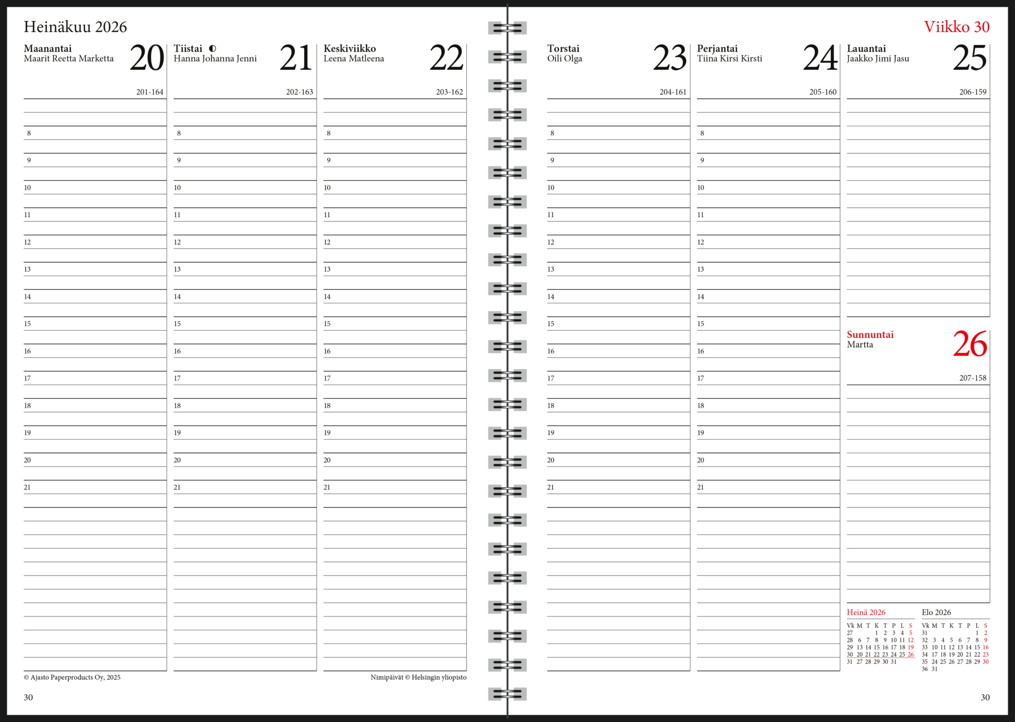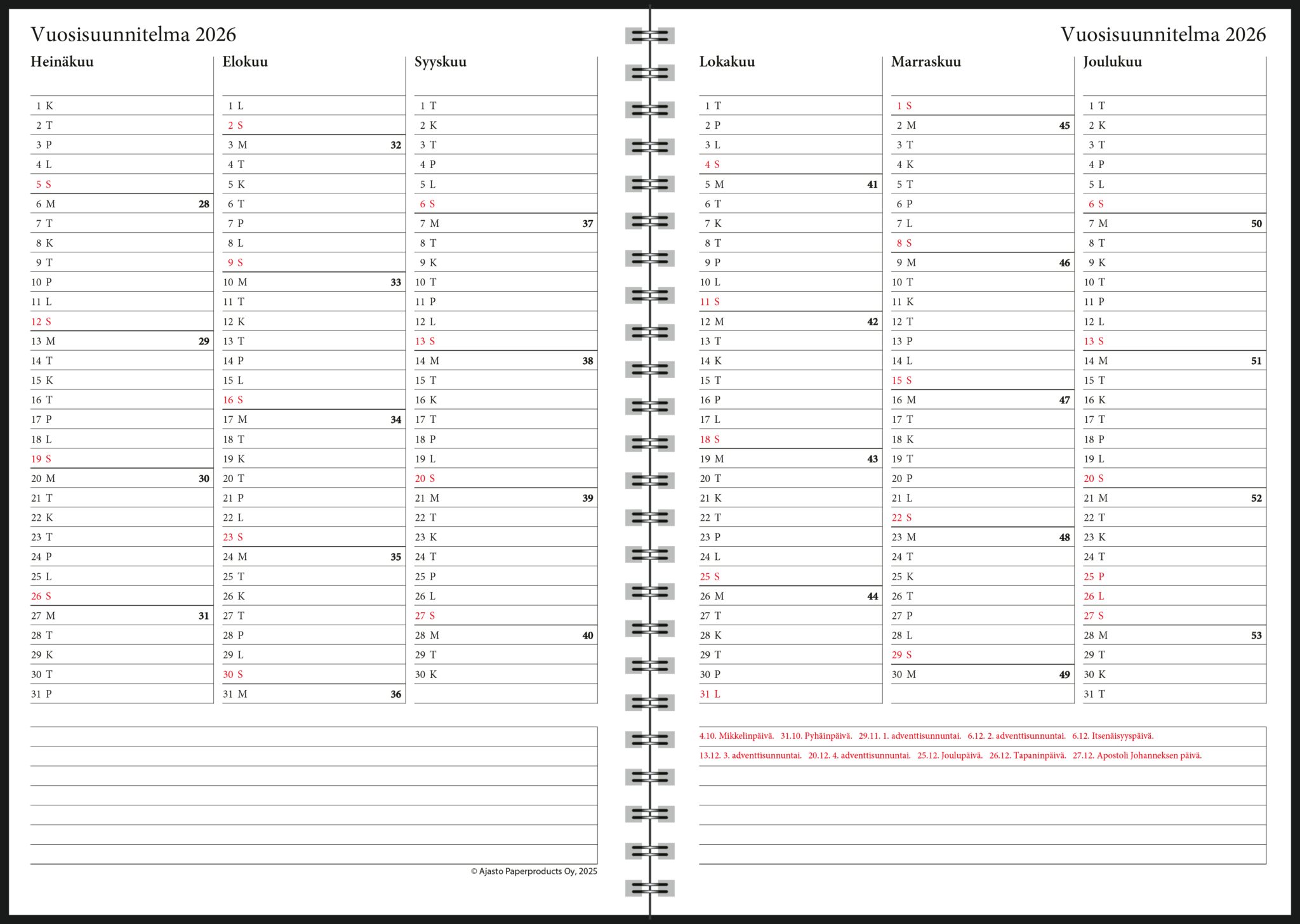 Arvokkaan oloinen, tukeva kalenteri päivittäiseen käyttöön.