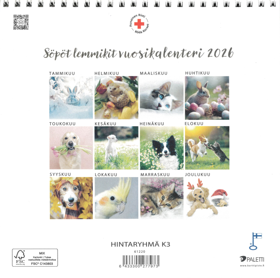 Söpöt lemmikit 2026 seinäkalenteri SPR