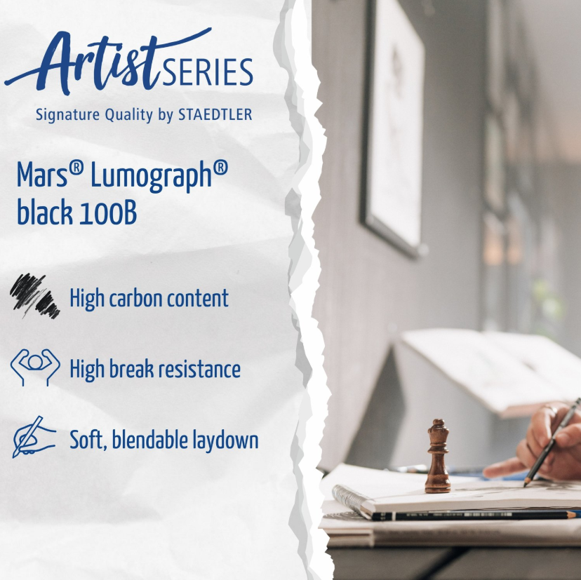 - Mars® Lumograph® musta 100B on ensiluokkainen taiteilijakynä