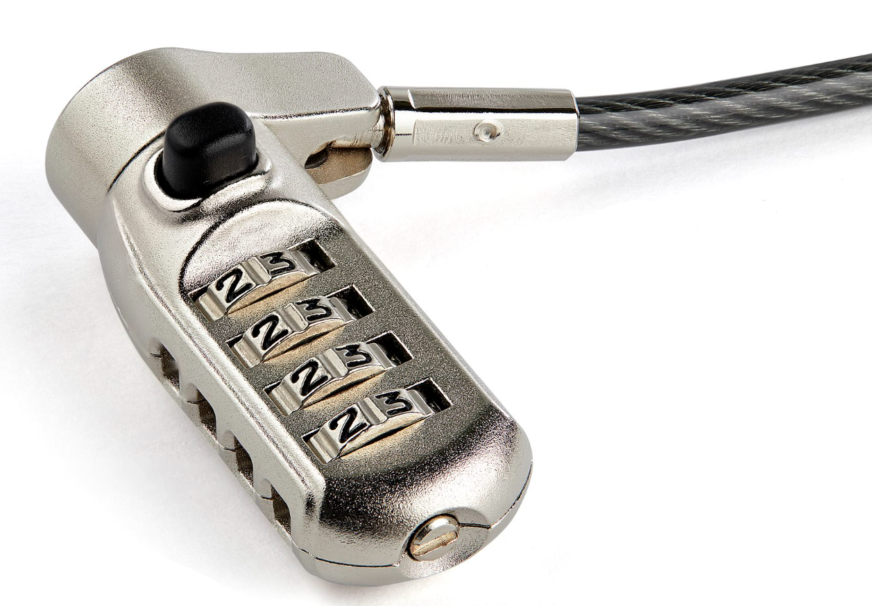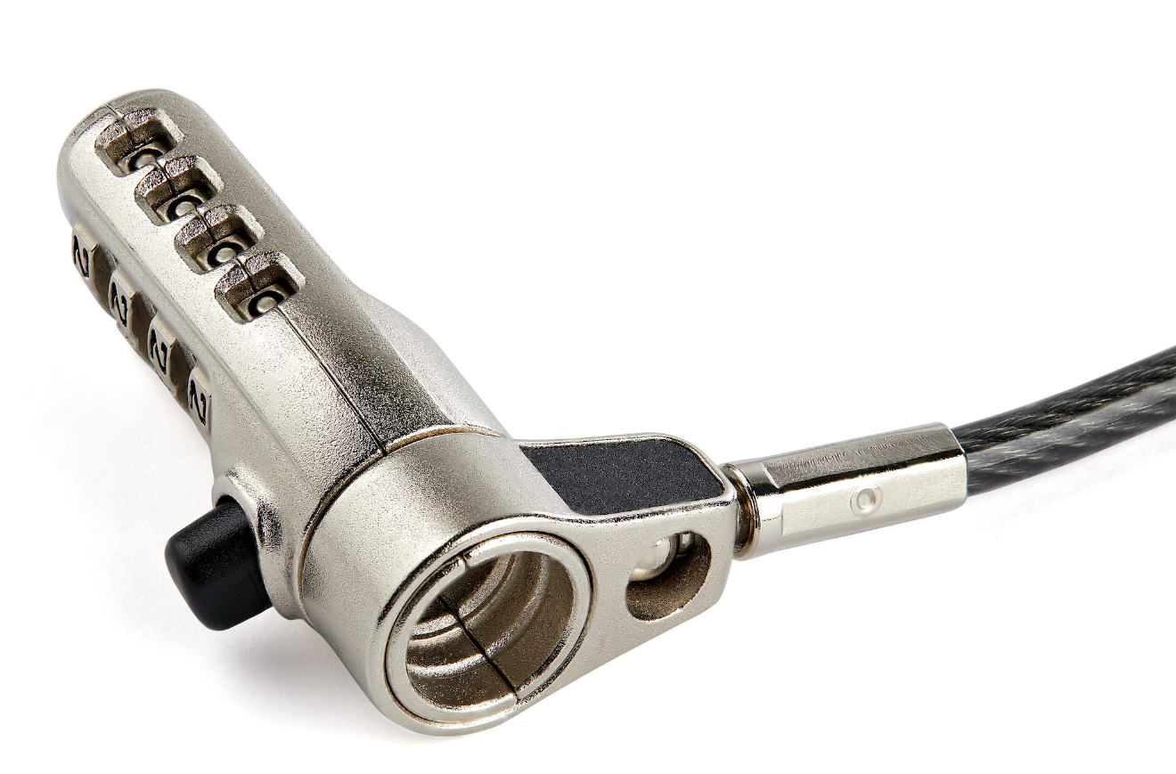 • StarTech.com 3-in-1 Universal turvakaapelilukko: Vaihdettavat lukkopäät, jotka ovat yhteensopivia Kensington-tyylisten K-Slot/Nano- ja Noble Wedge -lukkopaikkojen kanssa; 2 m kestävä turvavaijeri (4,4 mm paksu)