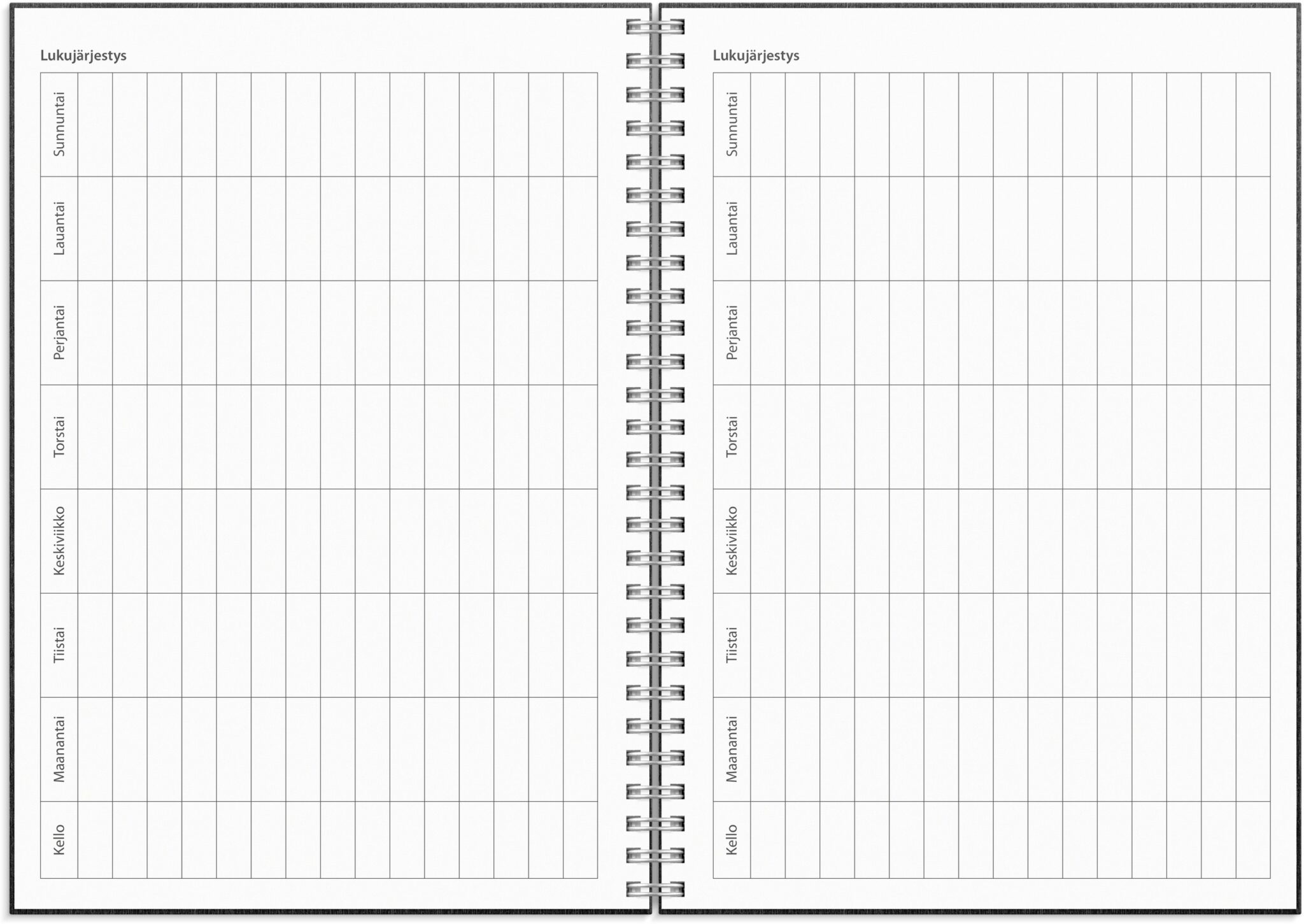 • Kalenterin aukeamalla yksi viikko, tuntijaotus 08-20, palsta muistiinpanoille, kuluvan ja seuraavan kuukauden kalenteritaulukot