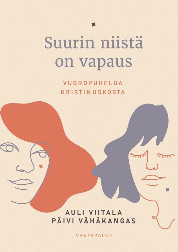 Auli Viitala kasvoi uskonnottomassa perheessä ja otti vastaan kasteen aikuisena. Päivi Vähäkangas taas kasvoi pappilassa ja on ollut kirkon vaikutuspiirissä teologina ja pappina. He kohtasivat, kun Viitala alkoi pohtia kastetta ja kirkkoon liittymistä, ja alkoivat keskustella uskonnosta. Suurin niistä on vapaus on rehellinen ja älykäs keskusteluteos kirjoittajien henkilökohtaisesta uskosta, elämän perimmäisistä kysymyksistä ja kirkon kipupisteistä maailman muuttuessa ympärillä. Kirja koostuu keskusteluista, joita tekijät kävivät ennen Auli Viitalan kastetta ja kirkkoon liittymistä sekä niiden jälkeen. Teoksen omaääniset puheenvuorot rohkaisevat ajattelemaan uudella tavalla ja johdattavat teologian perusteisiin. Kirjan ytimessä on ajatus vapaudesta – vapaudesta uskoa omalla tavallaan, vapaudesta kasvaa, epäillä ja kuulua. Auli Viitala on kirjailija ja kolumnisti. Päivi Vähäkangas on teologi ja Helsingin tuomiorovasti.