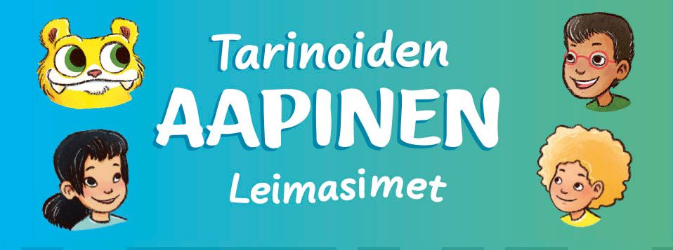 Tarinoiden aapisen leimasinpaketissa on neljä leimasinta, joissa on Tarinoiden iloiset hahmot Mumu, Pippuri, Kaiku ja Lumo.