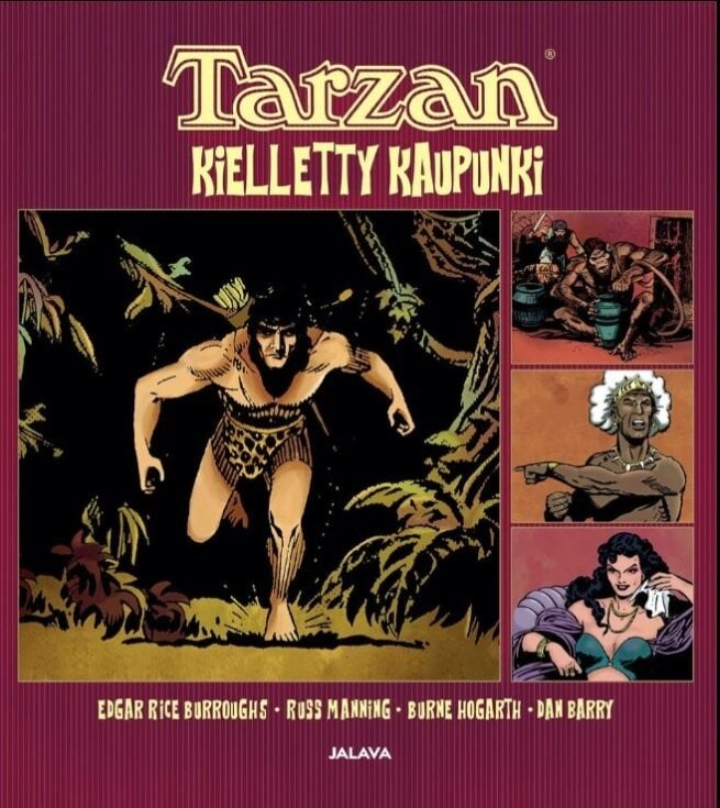 Seikkailusarjakuva vie Afrikan viidakkojen sydämeen, missä luonnonvoimat ja muinaiset salaisuudet kietoutuvat toisiinsa. Viidakkosankareiden kuningas Tarzan palaa! Kielletty kaupunki tempaisee lukijansa mukaan eksoottisiin maisemiin, ikivanhoihin raunioihin ja jännittäviin seikkailuihin, jotka pitävät otteessaan ensilehdeltä viimeiseen sivuun saakka. Albumin monipolvisissa seikkailuissa Tarzan taistelee muun muassa Pellucidarin petojen ja ihmisten aiheuttamia uhkia vastaan – rinnallaan ikuinen rakkautensa, Jane. Kielletyssä kaupungissa Edgar Rice Burroughsin luoma Tarzan seikkailee kolmen sarjakuvan mestaripiirtäjän Suomessa ennen julkaisemattomissa tarinoissa 1940- ja 1970-luvuilta. Russ Manningin, Burne Hogarthin ja Dan Barryn piirtämä vauhdikas kokoelma on visuaalinen herkkupala kaikille seikkailusarjakuvan ystäville. EDGAR RICE BURROUGHS (1875–1950) oli yhdysvaltalainen kirjailija, joka tuli tunnetuksi 24-osaisesta Tarzan-romaanisarjastaan. Tarza- nit olivat vuosikymmeniä kestänyt menestys, joka synnytti kirjojen lisäksi sarjakuvia, elokuvia ja monenlaisia Tarzan-tuotteita. Tarzan on vielä 2000-luvullakin yksi populaarikulttuurin isoimmista brändeistä. Jalavan julkaisemat Tarzan-sarjakuva-albumit Paluu Opariin (2024), Kivinen faarao (2025) ja Kielletty kaupunki (2026) ovat parasta seikkailusarjakuvaa viidakon tunnelmaa ja vauhtia rakastaville.