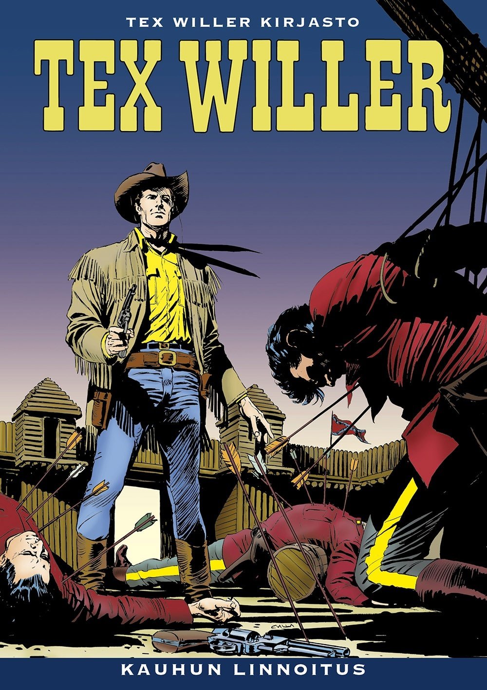 Ensimmäisillä sivuilla saadaan päätökseen tarina neljästä likaisesta lurjuksesta. Toisessa seikkailussa alkaa Texin ja punatakkien kapteenin Jim Brandonin pitkä takaa-ajo vaarallisen intiaanikapinoiden kiihottajan Roger Goudretin perässä ranskankielisen Kanadan alueiden halki. Siellä kansa vihaa ankarasti englanninkielisiä kanadalaisia, joita se pitää valloittajina, ja tekee kaikkensa suojellakseen kapinallisia, joiden kiihkeä tavoite on eroaminen valtakunnasta. Alkuteos: Tex – Collezione storica a colori 86 Il forte dell’orrore. Ikäsuositus 12+.