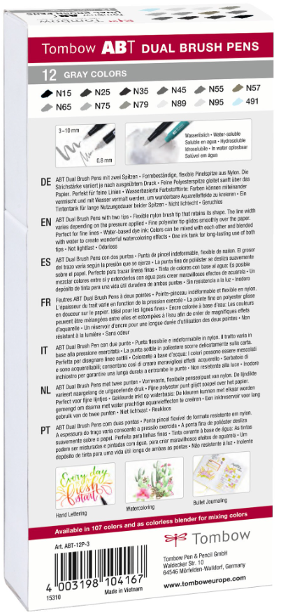 - Seuraavat värit sisältyvät lajitelmaan: black, lamp black, cool grey12, cool grey10, cool grey7, cool grey5, cool grey3, warm grey5, warm grey2, warm grey1, cool grey1 & 491 glacier blue