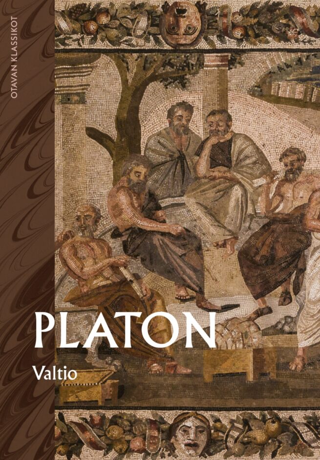 Valtio on Platonin kuuluisin dialogi ja kiistaton pääteos. Se kuvaa oikeudenmukaista valtiorakennetta hyvän elämän ja onnellisuuden perustana sekä sisältää kuuluisan luolavertauksen. Teos on yhteiskuntateoria ja poliittinen utopia, jonka pohjaksi Platon esittää koko ihmiskäsityksensä, politiikkansa, taideteoriansa ja metafysiikkansa. Antiikin Kreikassa vaikuttanut Platon (427-347 eaa.) oli yksi kaikkien aikojen vaikutusvaltaisimmista filosofeista. Hänen ajatteluaan on pidetty koko länsimaisen filosofian historian perustana.