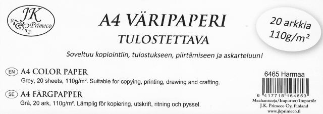 • A4-kokoinen väripaperi askarteluun, kopiointiin ja tulostukseen