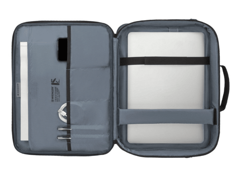 - Essentials-järjestäjä pitää virtajohdot, laturit ja käyntikortit järjestyksessä ja helposti saatavilla
